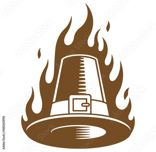 Burning thanksgiving pilgrim hat brown silhouette symbol of holiday celebration illustration