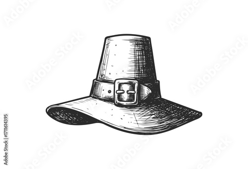 Thanksgiving pilgrim hat with buckle a traditional historical holiday symbol in a vintage illustration style