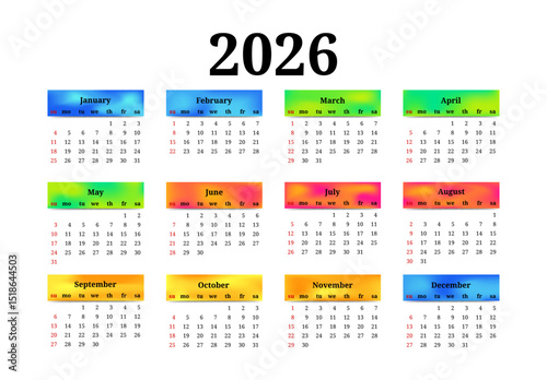 GERMAN calendar for year 2026. Modern illustration for Germany