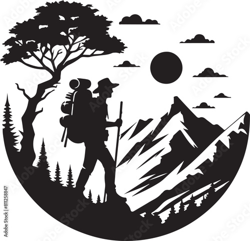 Silhouette of hiker. Collection of male and female hiker. mountaineer climber hiker people, vector silhouette collection. hiking man and woman with rucksack silhouette. Backpacker and climber people.