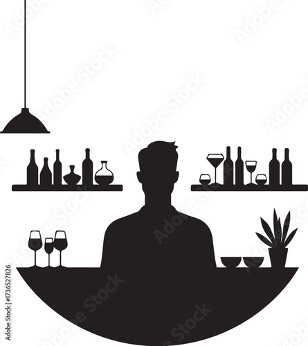 Minimalist Line Art Bartender Preparing a Cocktail Drink Illustration