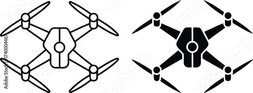 Drone icon set. Minimalist quadcopter line art symbols. Vector collection for modern technology, aerial photography, surveillance and delivery concepts. Sleek linear design.