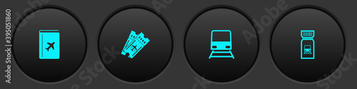 Set Cover book travel guide, Airline ticket, Train and icon. Vector.