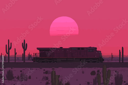 Train Silhouette on Tracks: A sleek train silhouette chugs along the tracks, a plume of smoke billowing, depicting a sense of journey and the romance of rail travel.