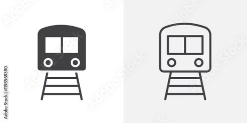 Icon for train, sign for railway transport, or symbol for metro station and underground railroad