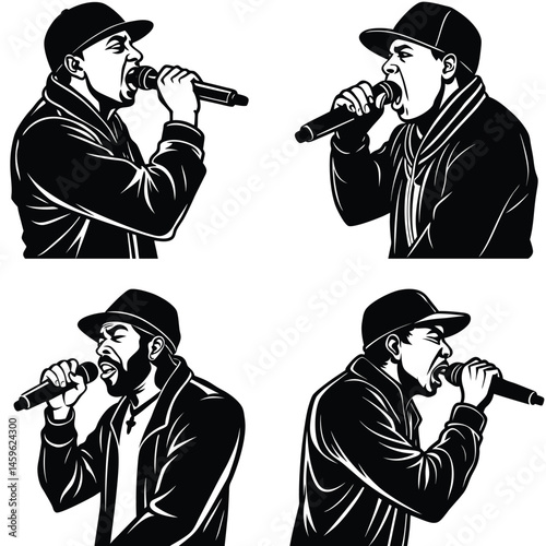 A singer pop, country music, rock star or hiphop rapper artist vocalist singing in silhouette