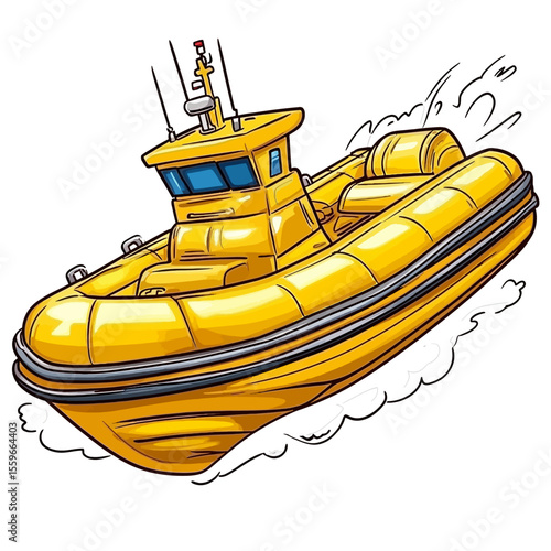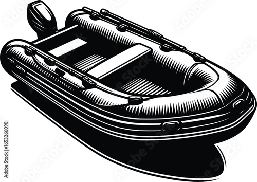 inflatable boat line art, black outline, vector and illustration, coloring book page line art drawing
