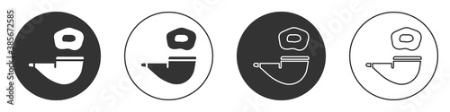 Black Smoking pipe with smoke icon isolated on white background. Tobacco pipe. Circle button. Vector.
