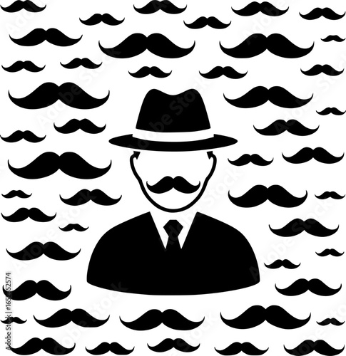 Detective with Mustache and Hat Surrounded by Many Mustaches