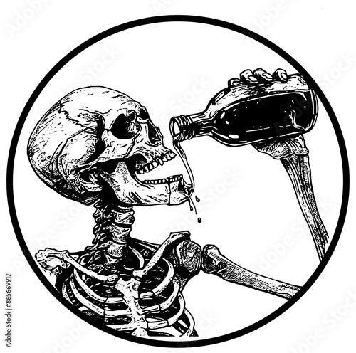 Skeleton drinking a drink out of a bottle illustration