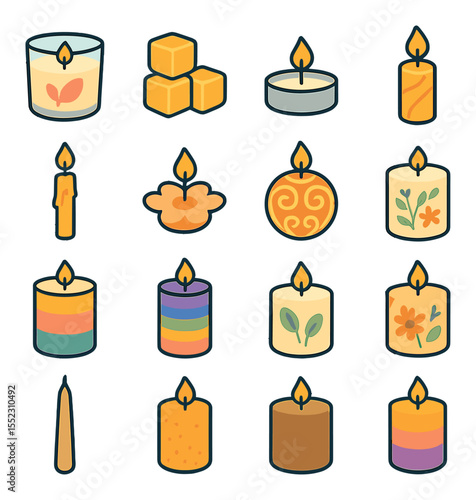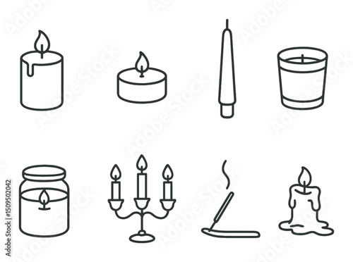 Collection of candle icons in various styles and shapes suitable for design projects or illustrations