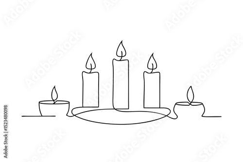 A large ornately decorated candle in the center of the corner with smaller tea lights tered around it.. Vector illustration