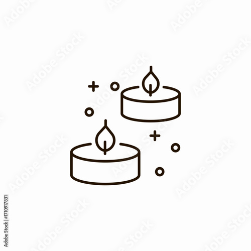 Tealight candle icon. Burning flame symbol. Simple round candle design. Vector illustration.