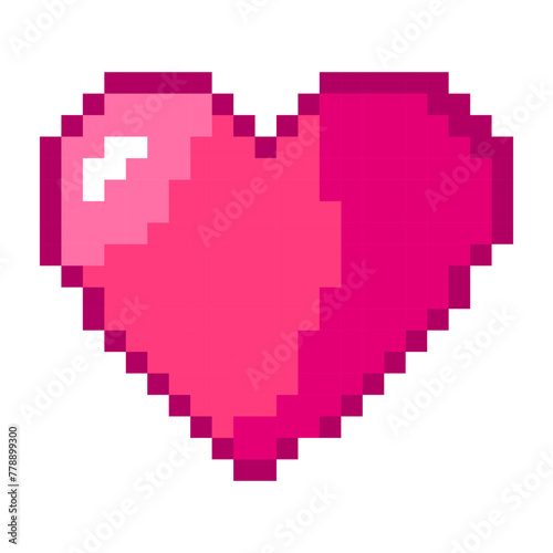 Pixel art heart. love color icon valentine. red heart. Gaming controller, symbols set.