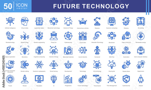 Artificial intelligence, robotics, and virtual reality future technology icon set