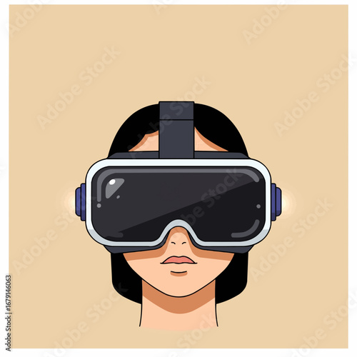 Vector Illustration of a Woman Wearing Futuristic VR Headset, Black and White.