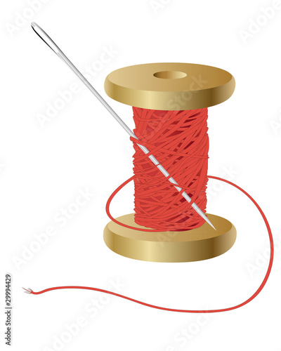 coil with a red thread and needle