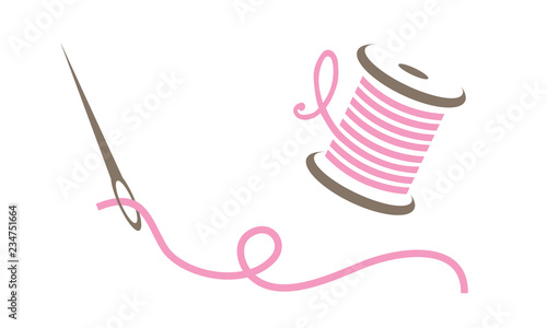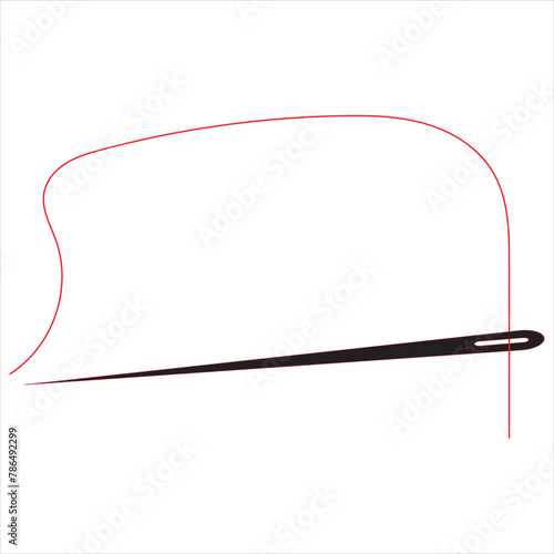 Sewing needle and thread logo, hand drawn dressmaking supplies element, flat embroidery accessories design, cartoon tailor craft decoration object, doodle fashion tool illustration,