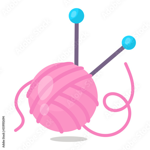 Knitwear, ball of yarn and needles isolated on white background. Symbol of hobby, needlework, homework. Tools for knitwork, andicraft, crocheting, hand-knitting. Stock vector illustration
