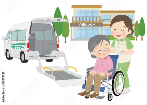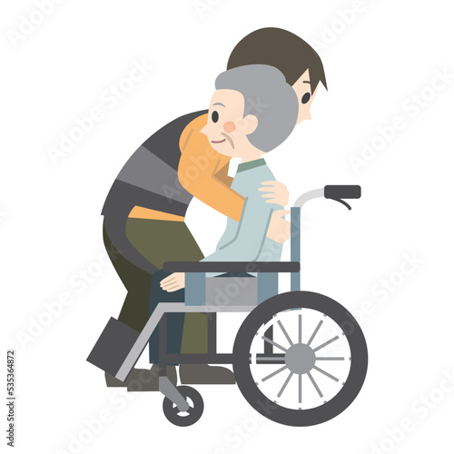 車椅子に乗るシニア女性 介護スタッフ イラスト
