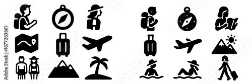 Hotel and travel icons illustrating various services and amenities for guests in a simplistic and modern design
