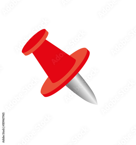 Vector push pin on white background connected with wire.
