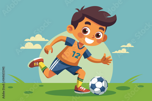 A young soccer player demonstrates skill kicking the ball with a focus on athleticism and sportsmanship
