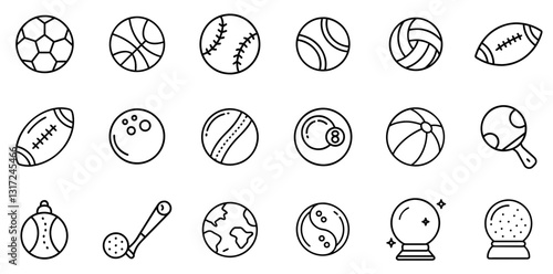 "Ball Icons Set: A Dynamic Collection of Symbols Representing Various Sports and Ball Types"