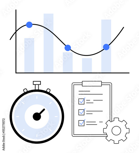 Stopwatch and speech bubble against a cloud backdrop. Ideal for time management, communication, efficiency, productivity, deadlines, task management, organization. Line metaphor
