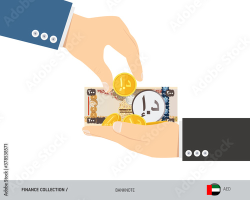 Briefcase with 200 United Arab Emirates Dirham banknote. Flat style vector illustration. Corporate business concept.