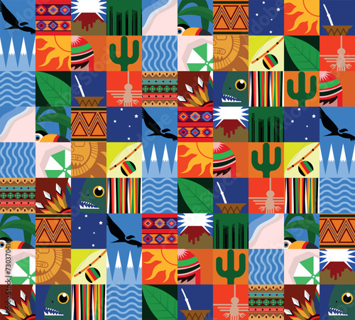 Chakana inca crosses seamless pattern. Ethnic embroidery print. Ornamental folk wallpaper. Native american ornament