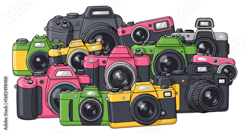 Vintage Camera Vector Illustration with Film Roll Focus Square and Flash Element in Retro Style
