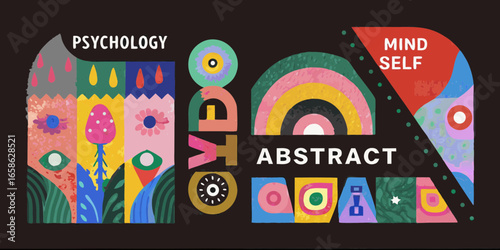Abstract colorful background. Color Displaying Abstract Art in Fluid Patterns, Concept photos of desks. Commercial background, papers background, geometry style. Yellow, blue, green, pink colors.