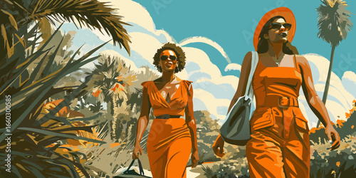 Silhouette of Tropical Palm Trees Exotic Island Paradise Illustration