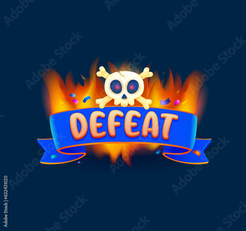Computer pixel game interface, pixalated defeated personage near dinosaur with fire, 8 bit portrait view of fight monster and character, hero battle in video-game, you lose duel, game over text