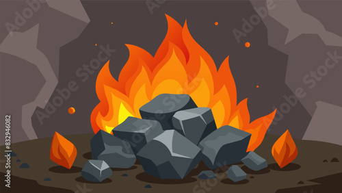 The furnaces flames licked at the metal chunks inside eagerly consuming them and turning them into a fiery pool of molten metal.. Vector illustration