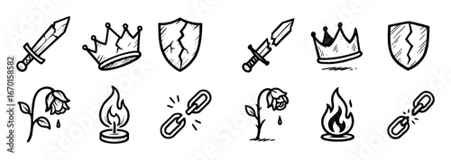 Competition icon set with rivalry, contest, match, battle, tournament, championship, race, conflict, struggle and opposition.