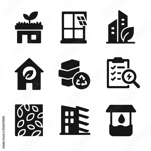 Eco-Friendly Building Icons. Alternative building materials for eco-friendly homes. Icon set. Set Logo of Alternative building materials for eco-friendly