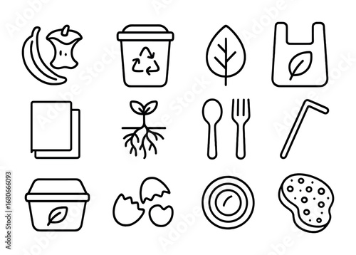 Minimal Waste Line Icon Set 30 Clean Outline Symbols for Recycling, Garbage, and Eco-Friendly Design