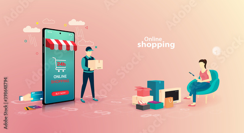 Man and woman carrying boxes. Delivery people holding a parcel package character vector design.