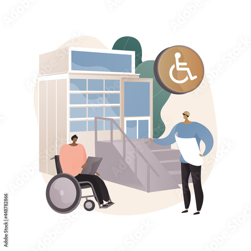Accessible environment design abstract concept vector illustration. Disability-friendly area, smart city, barrier-free, entryway ramp, braille sign, public place and transport abstract metaphor.