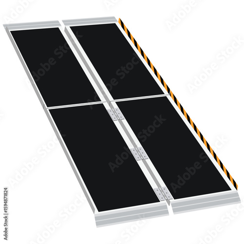 Illustration of a black rubber door threshold ramp for wheelchair access and home entrance