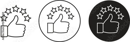 Thumb up with five stars line icons set, representing a high rating or positive feedback. Perfect for review or business marketing material. Satisfaction signs isolated on transparent background.