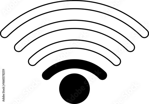 Wi-Fi symbol featuring curved lines and a circle, graphic illustration showcasing wireless connectivity and network connection