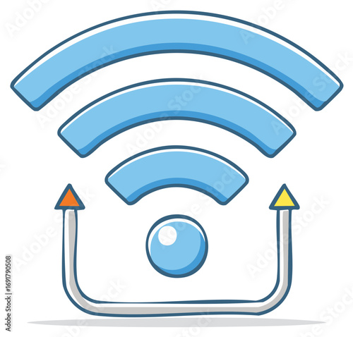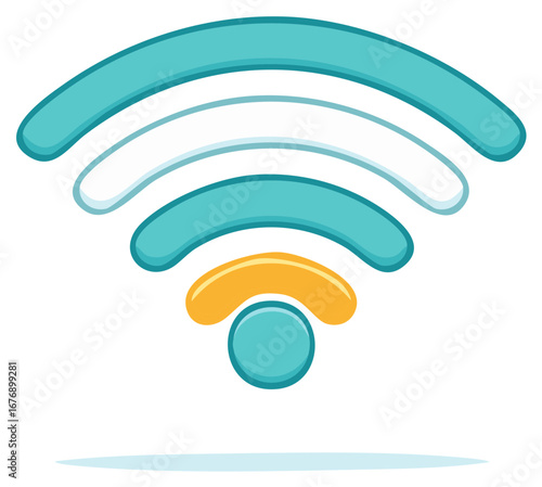 This vector illustration shows a 3D wifi icon, a symbol of wireless internet connection and communication technology, often found as a button or sign for hotspot access