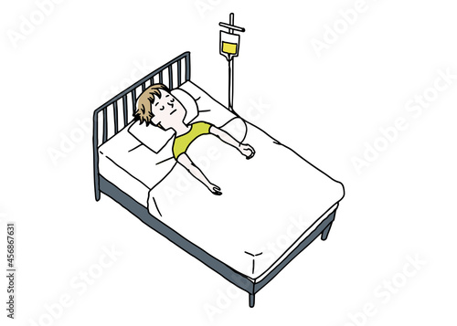 Hospital Patients in Beds Receiving Medical Care - Healthcare & Recovery Illustration