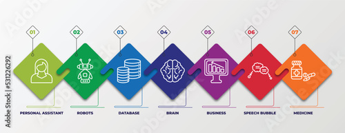 editable filled icons with infographic template. infographic for artificial intellegence concept. included personal assistant, robot assistant, eye tracking, data mining, coins, fyling vehicle,