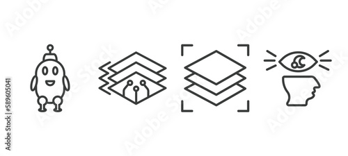 artificial intellegence outline icons set. thin line icons such as smart lens, infrared, body scan vector. linear icon sheet can be used web and mobile