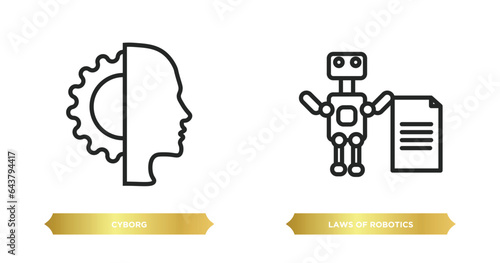 cyborg, deformity, ar monocle, shopping bag, data mining, science outline icons. editable vector from artificial intellegence concept. infographic template.