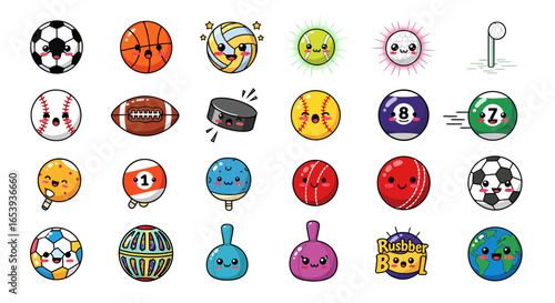 Collection of sports and activity icons featuring various equipment and children playing during a sunny day outdoors